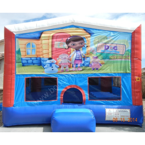 Come join Dottie "Doc" and her stuffed animal friends, Stuffy, Hallie, Lambie, and Chilly as they help all of their stuffed animal friends feel better. The Doc McStuffins Module House will put a smile on your face and make you feel better. Come on in and get your check-up with Doc. This 15x15 bounce house also comes with a basketball hoop and ball.