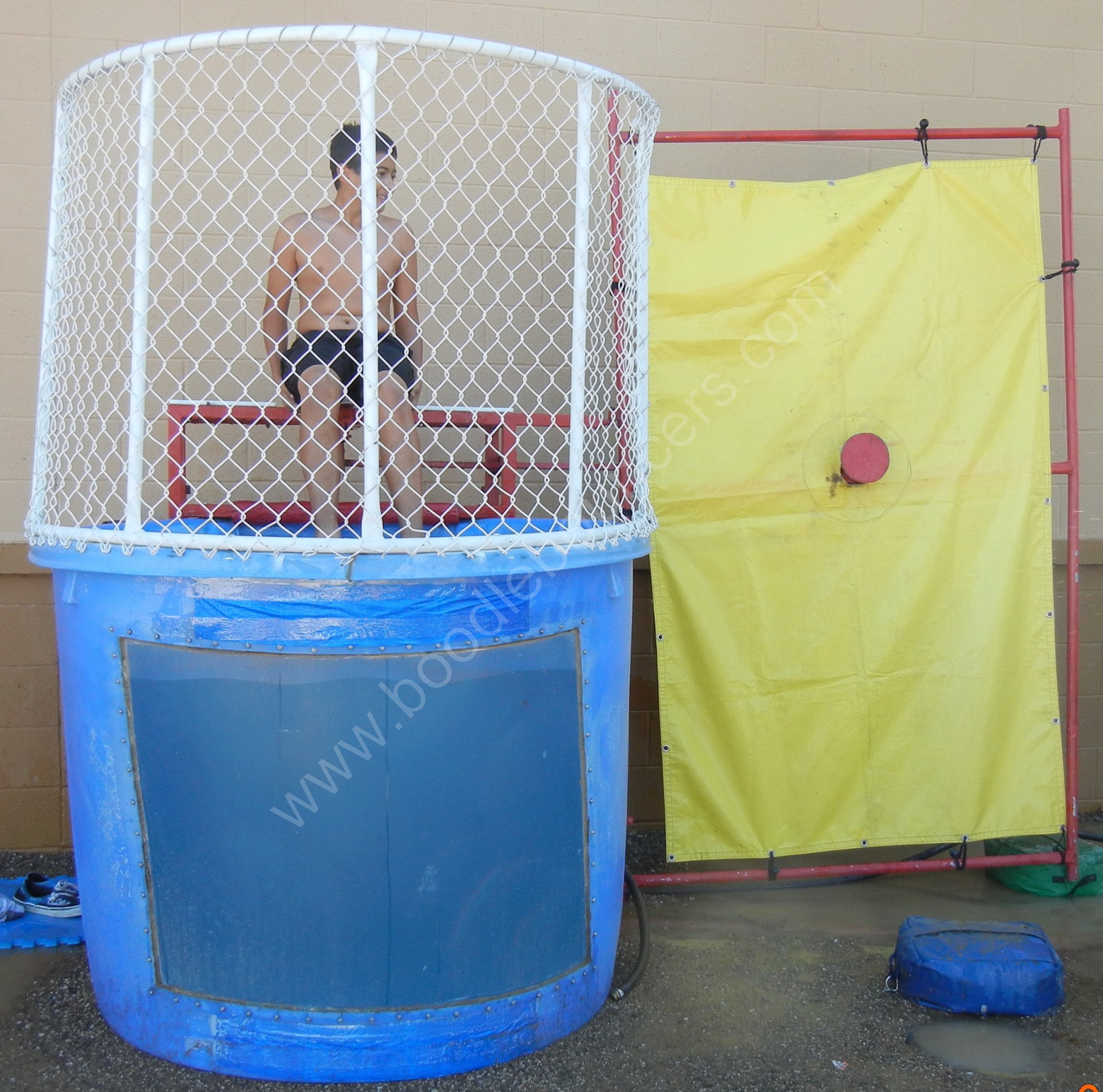 Everyone loves to watch a lucky person fall into the dunk tank. Your kids will look forward to seeing their school principal, teacher, parent or friend get dunked. Before they can dunk the lucky person they will throw the ball. Hit the target and watch them fall into a tank full of water. The dunk tank is perfect for school functions, fairs, carnival, church events and birthday parties.