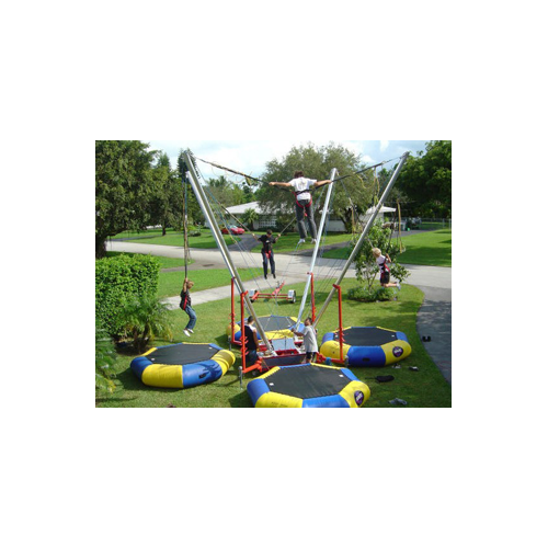 Guests will have fun being propelled 30 feet in the air. The Bungee Trampoline - 4 Station will be fun for kids and adults of all ages. Rent this for your next big event.