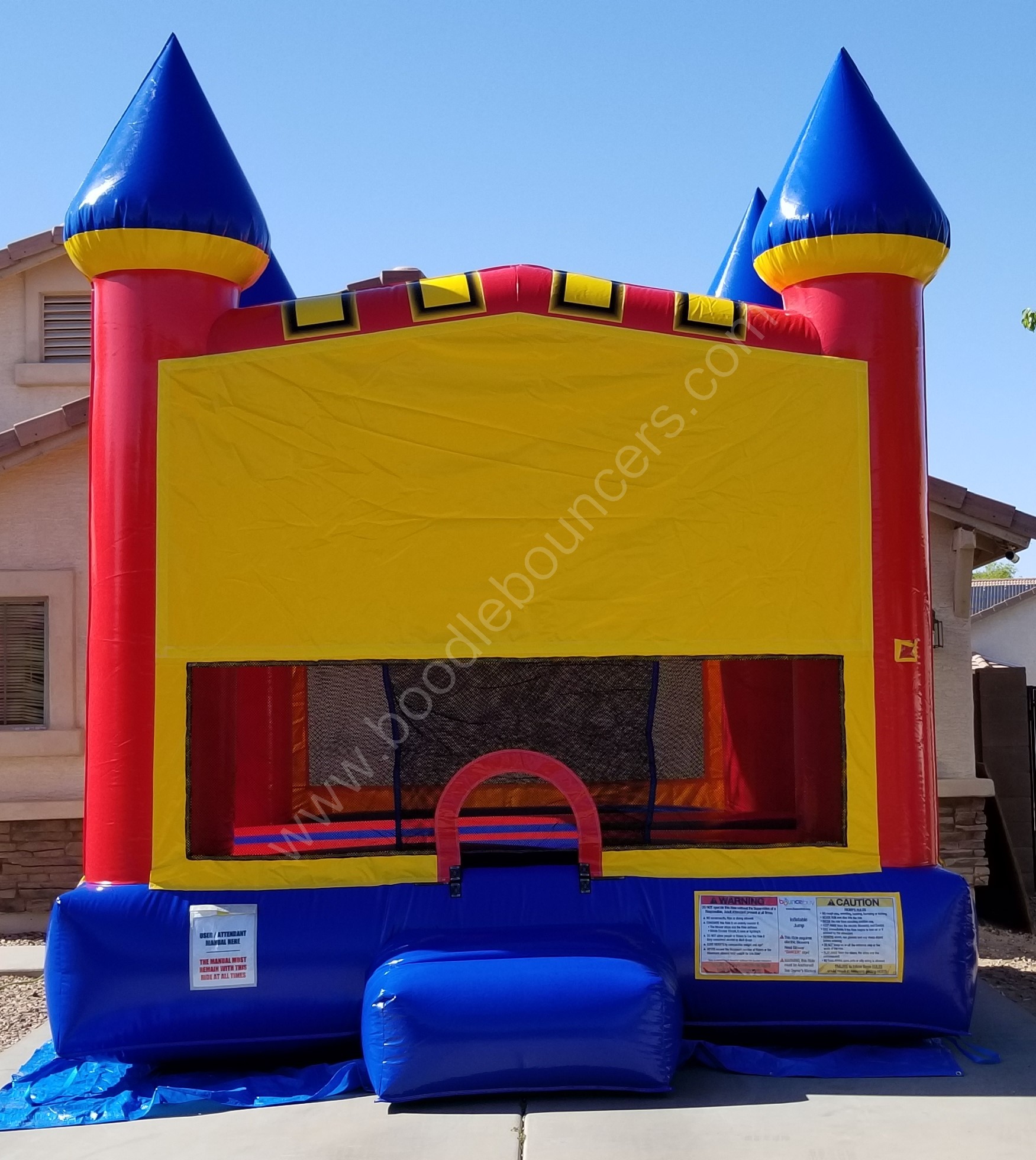 Our 13x13 medium Castle Module is a perfect unit to rent if you do not have a lot of space to set up a 15x15. Colors are vibrant and catches the attention of everyone around. If you are looking to add a panel to the unit, we have them available.