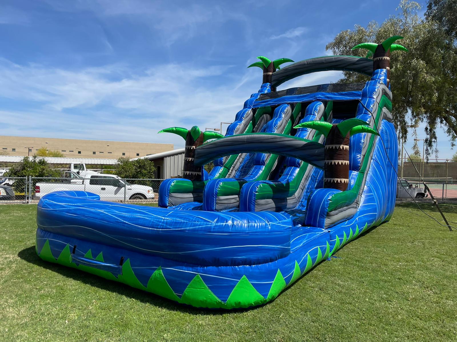 18 Foot Dual Slide Marble Blue Waterslide with Pool